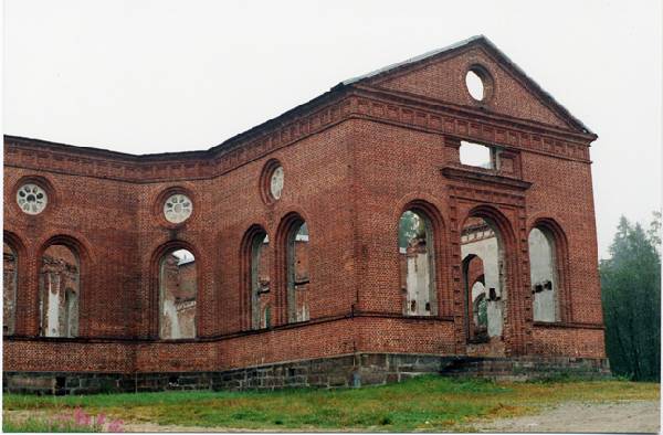 Aihe: Jaakkiman v. 1850 valmistunut Engelin piirtämä 3000 hengen tiilikirkko.